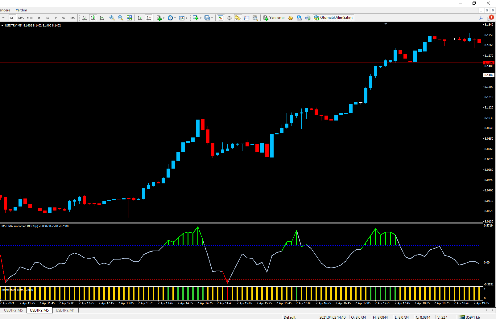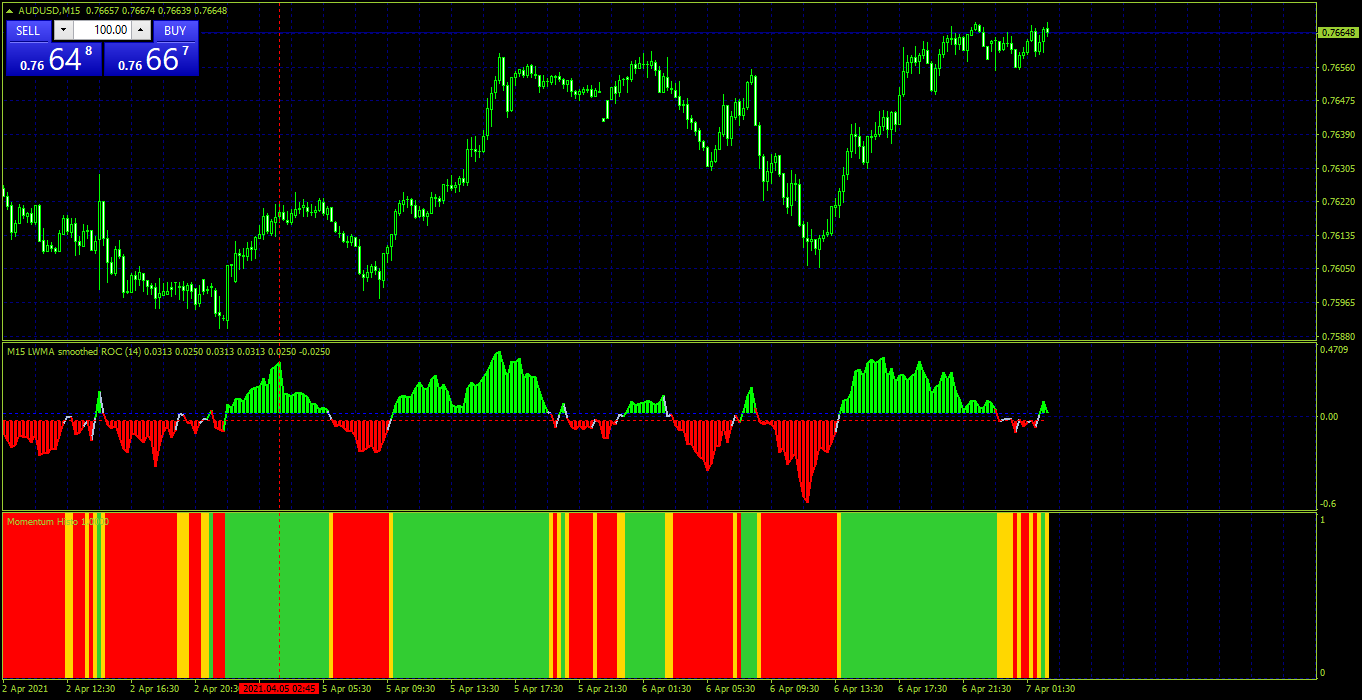 mrtools wrote: Wed Apr 07, 2021 10:55 am On the roc to match or get closer to a match you need to set the price smoothing to 1 then adjust the momentum levels, to match or close to match the roc can try setting the upper level at ,00025 and lower level to -.00025, and i got this.