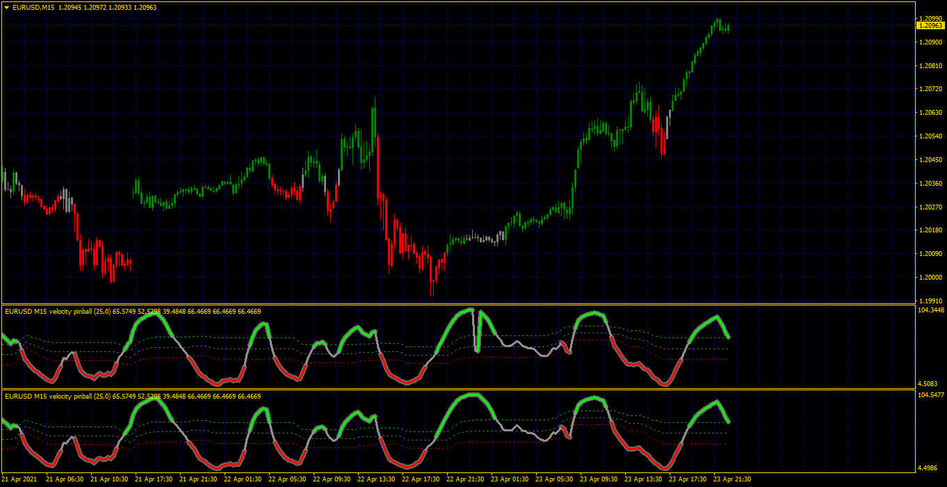 This is velocity pinball, with velocity taking the place of momentum. Since velocity is naturally smooth felt there was no need for the pre smoothing. Anyway indicator is mtf with floating levels.