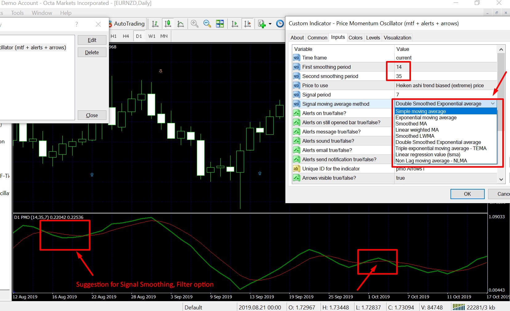 However, as with most 2 lines indicator, there is a little bit of jagged along the line (refer to my screenshot), which can give fast and false signals.