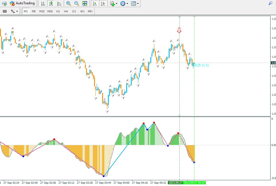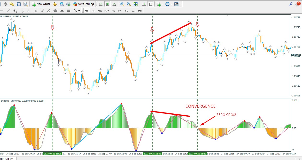 2. where only the convergence formed and price change to zero level / fractal arrow formed bar