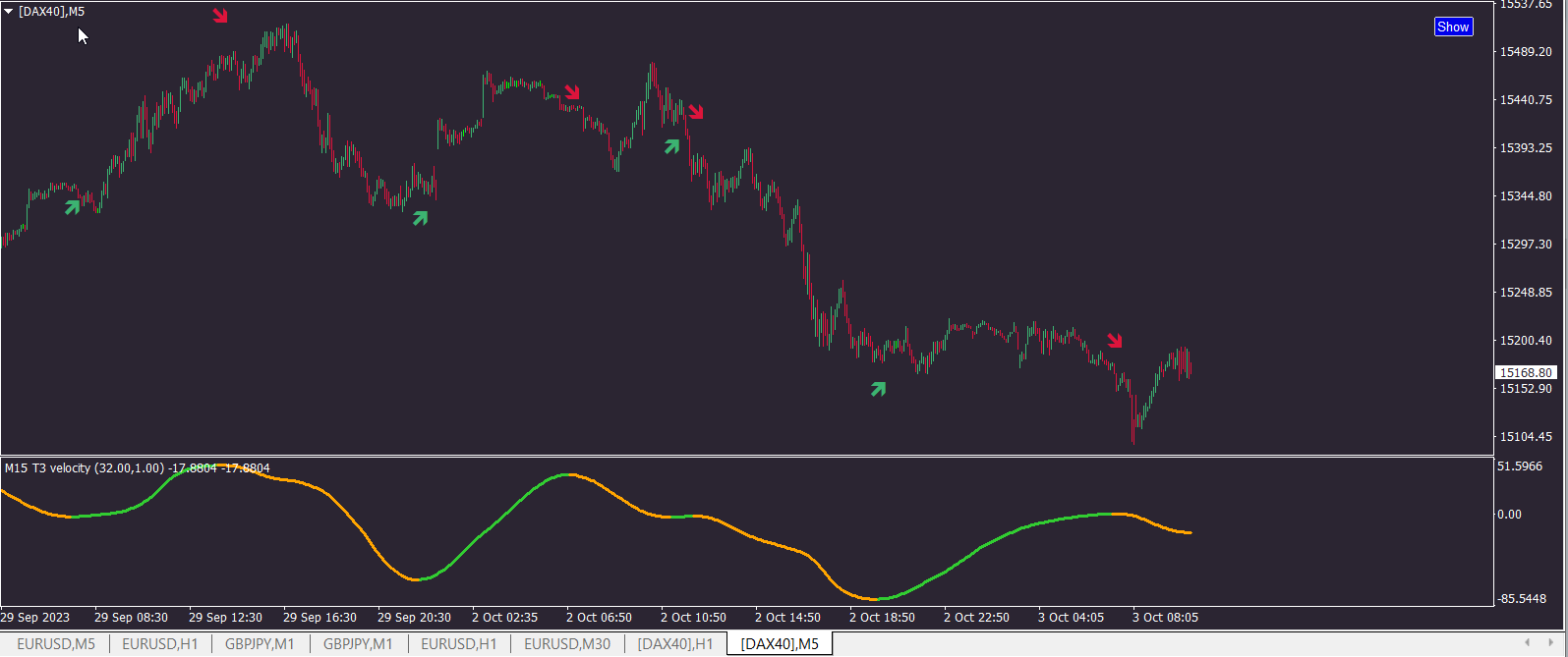 This is an T3 vhf adaptive Velocity indicator by MRTOOLS with interpolated mtf - 20 prices - user friendly - adapting speed function - line width option too