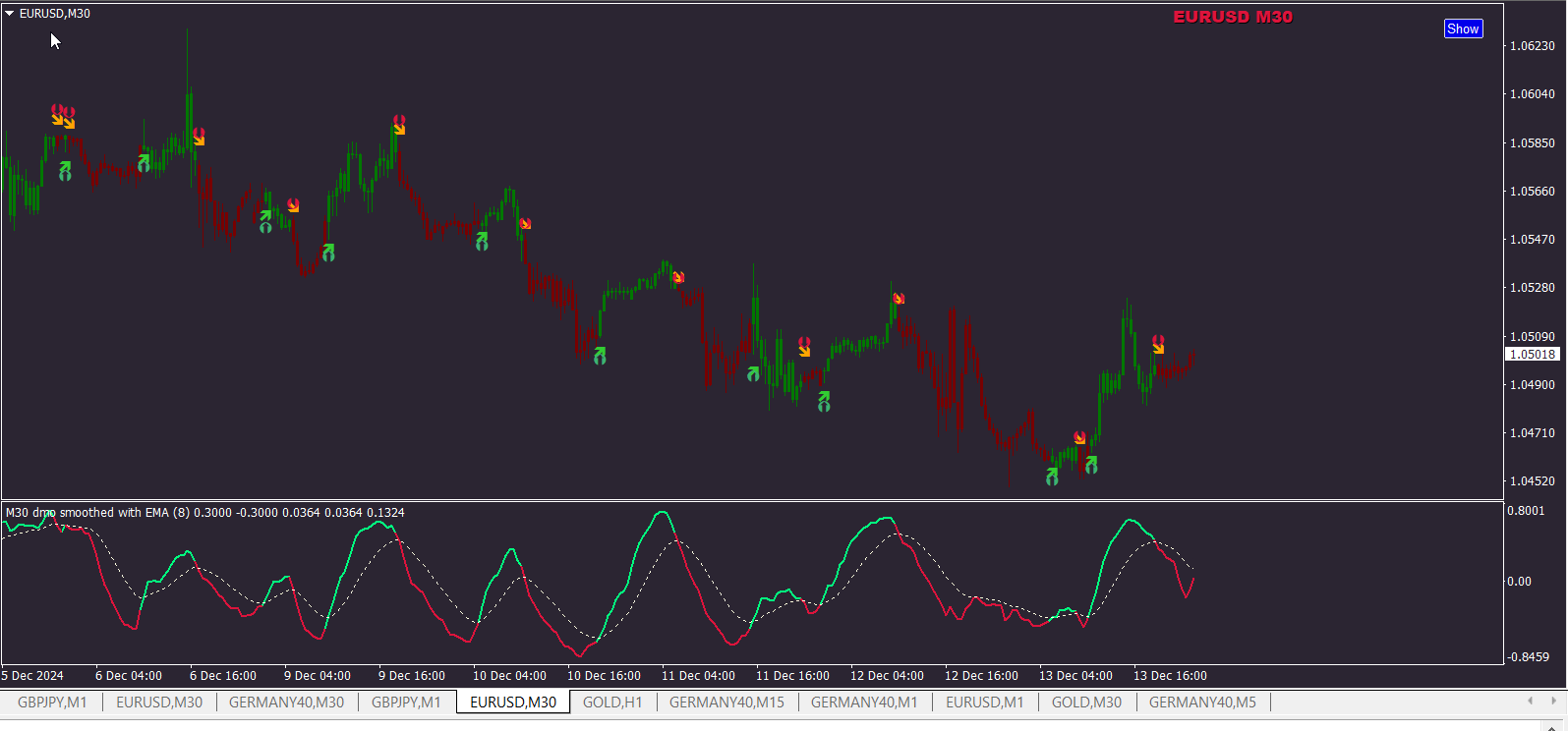 Smoother Momentum indicator with Multi-timeframe + Alerts & ArrowsCrystalG wrote: Mon Dec 02, 2024 5:55 am thanks very much! appreciate it much. this is yeah what I was looking for but whenever u get some time please can u add mtf and alerts (when crossing zero line after bar is closed) and also arrows on the chart.