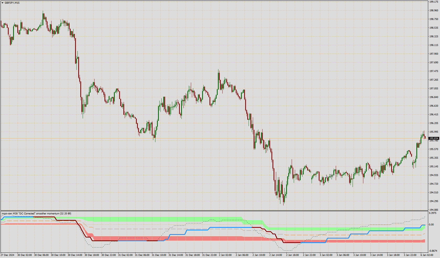 Added filtering to the momentum line, correction line, and the price. Also added mtf.
