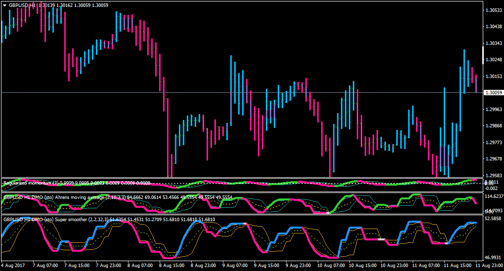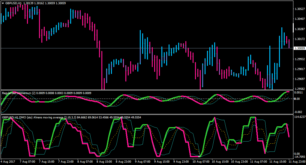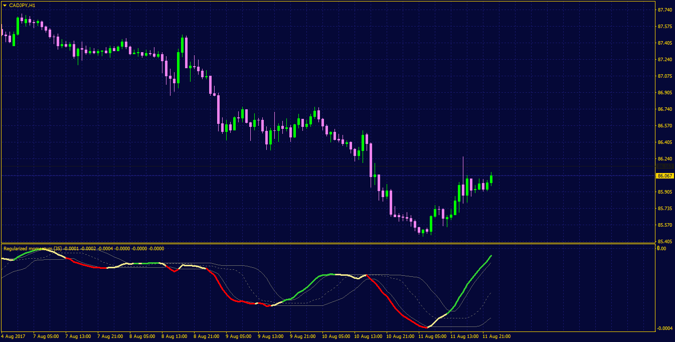 71This is Mladen's regularized momentum with floating levels(choice of quantile bands or regular floating levels). Has a choice of coloring of slope, outer level cross, or mid level cross. Also added the 33 different price options.