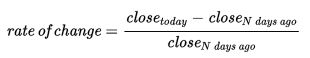 Rate of change scales by the old close, so as to represent the increase as a fraction,