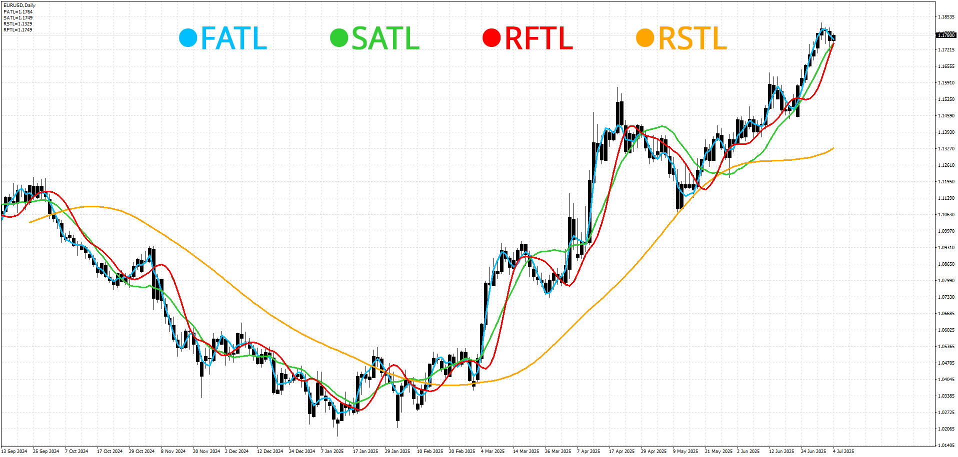 FATL (Fast Adaptive Trend Line) - "Fast" adaptive trend line is obtained using a digital filter with a small low frequency cut-off period.
