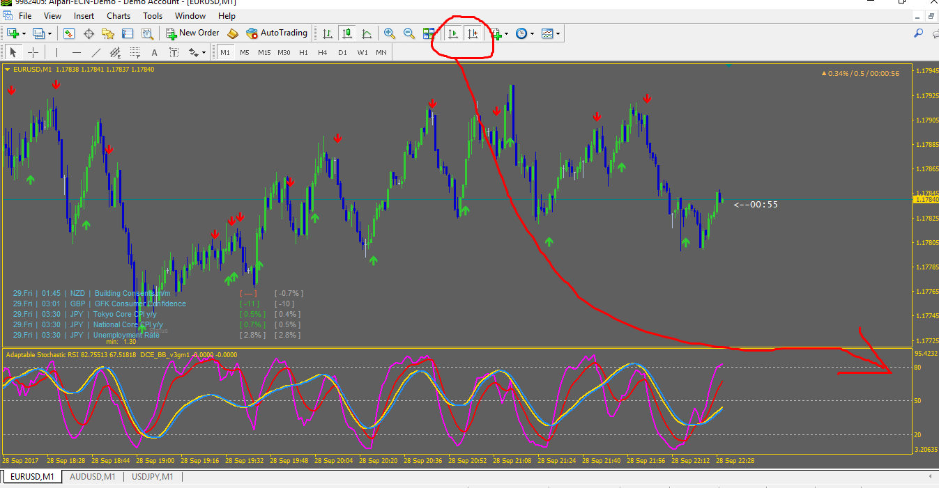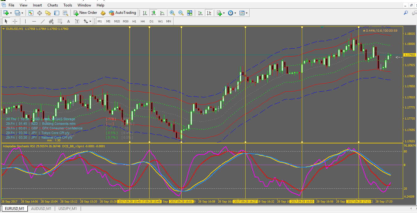 1077Maybe you should try this keltner indicator with alarm at bands. Lwma 60 with ATR 30 on KATR 3 will be similar to your TMA 55, but not repainting. The simplier ATR bands (brown in picture) is faster for your renko charts, both calculate volatilty bands similar to starc bands.