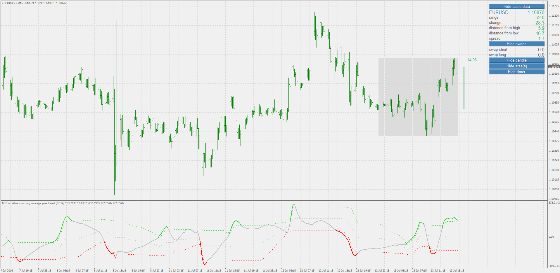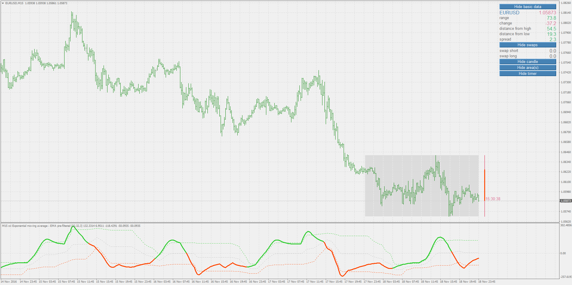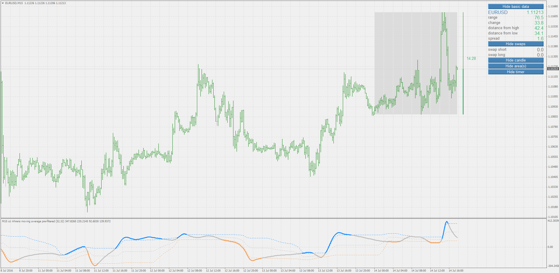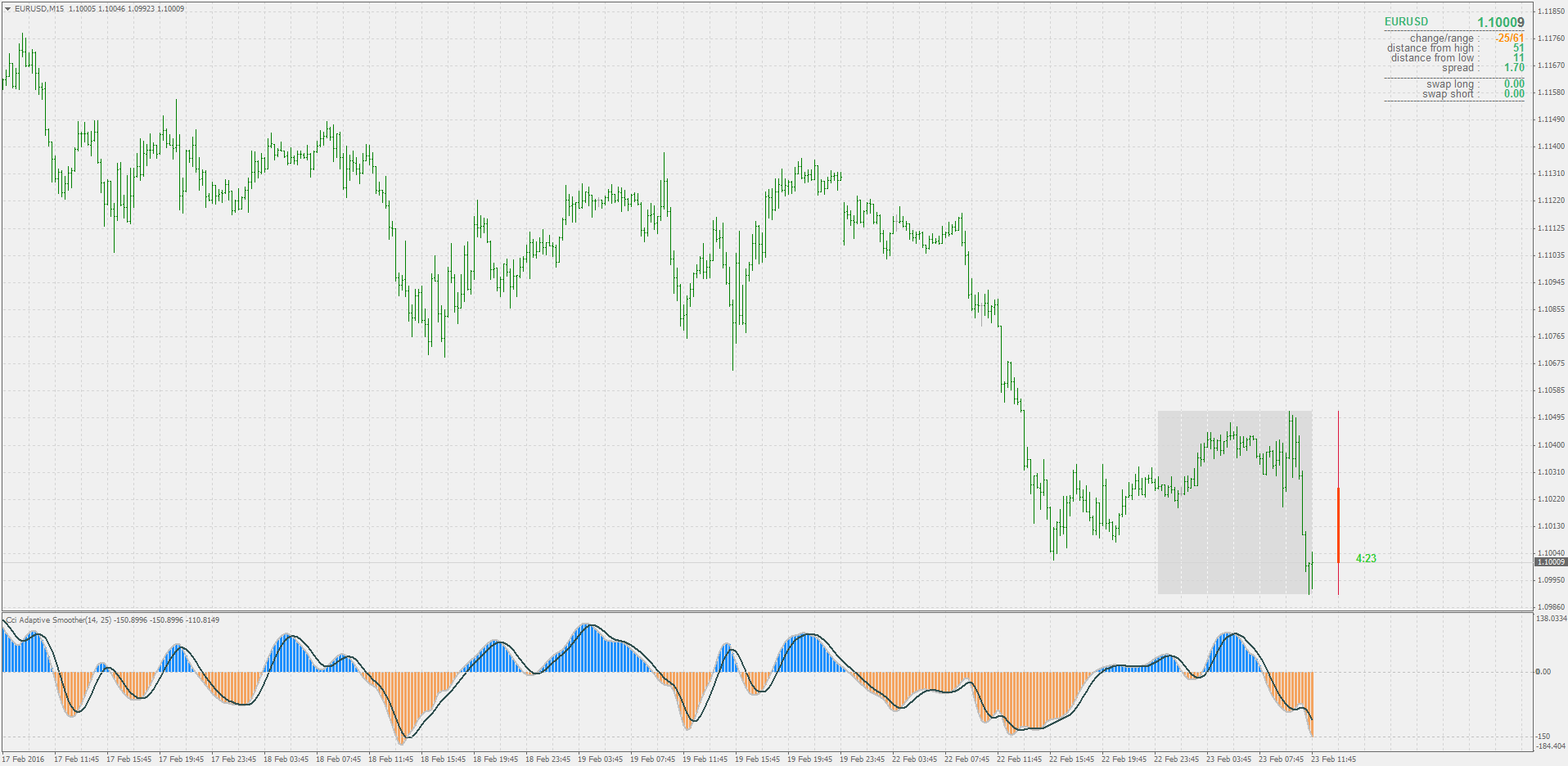 The CCI can be adjusted to the timeframe of the market traded on by changing the averaging period.