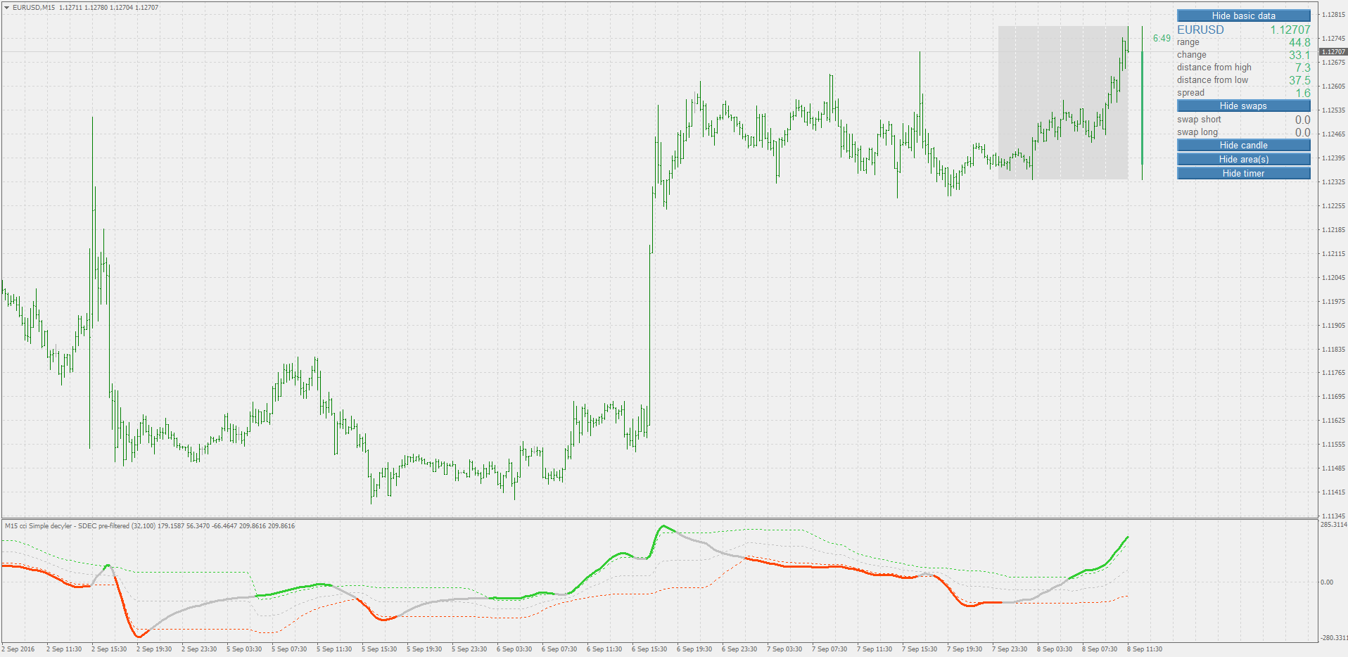 Example: CCI shown on a ProRealTime Chart