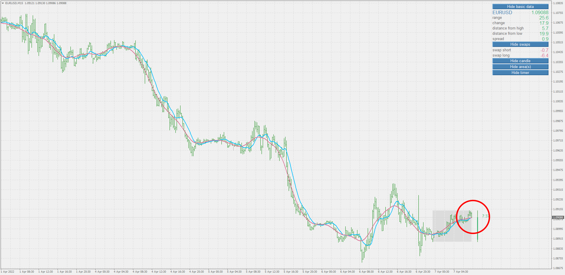 Now centering is simply shifting values to the left on the chart by half length bars and after doing that it looks like this : As it is obvious, by shifting it to the left, it fits perfectly the data but it starts lacking data from the right. And then comes in the centered (repainting) version of triangular moving average ...