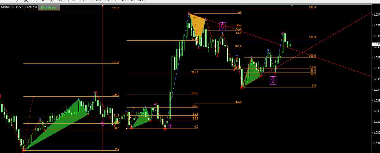 You can color it any way you like (triangle and ray) via the settings, if you want you can change on the periods instead of input int simply change it to input double, and as far as the fibs, not sure what you are asking?