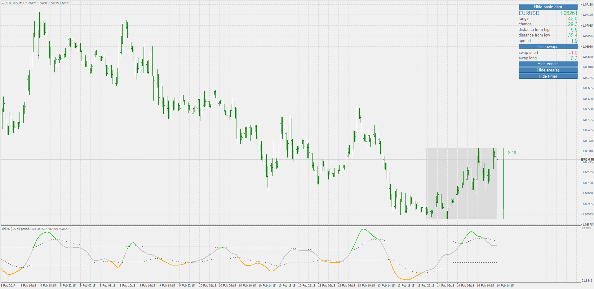 - When a certain level is crossed into the desired direction, the EMA of that value is calculated for the desired signal line