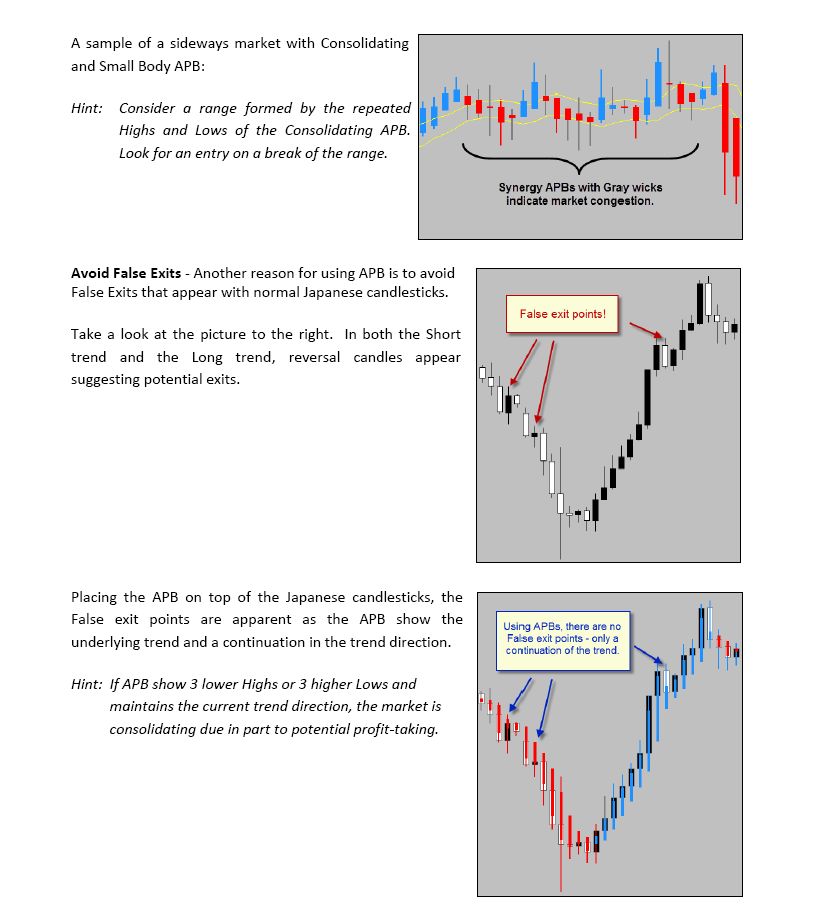 When these charts go into nasty sideways action, there will be a lot of candles with wicks coming out of both ends of the body â a warning sign to be on the side lines.