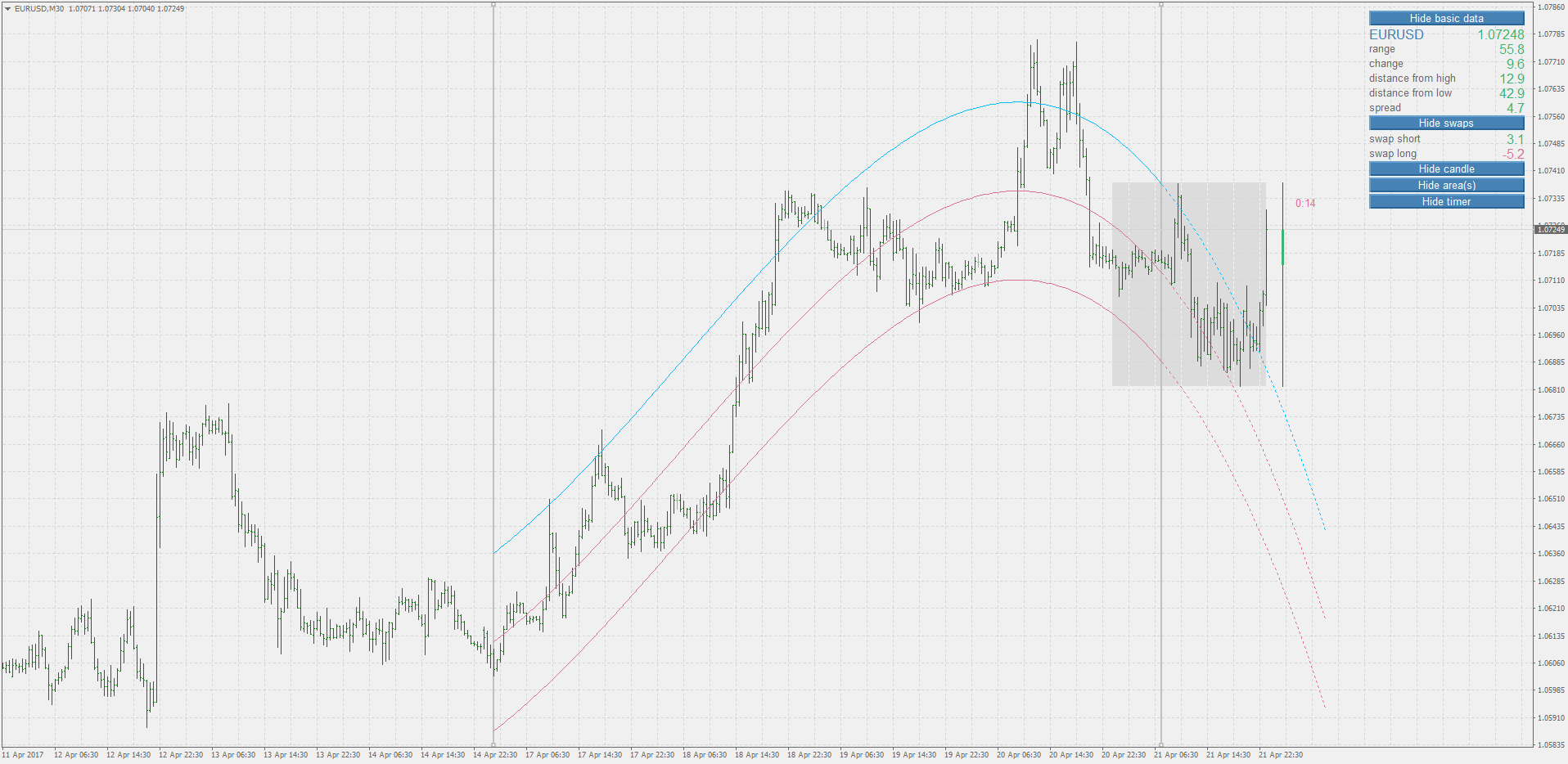 It is a polynomial regression channel with a couple of extra options. The most important is that it can calculate values using bar numbers or using a vertical delimiting line. If you are using the vertical delimiting line, all you have to do is to drag the lines to desired places and the values are going to be calculated for the chosen segment of data. That way you can easily check how well (or dismal) did the extrapolation part perform on historical values too (depending on the segment of data uses as a basis for extrapolation, of course)