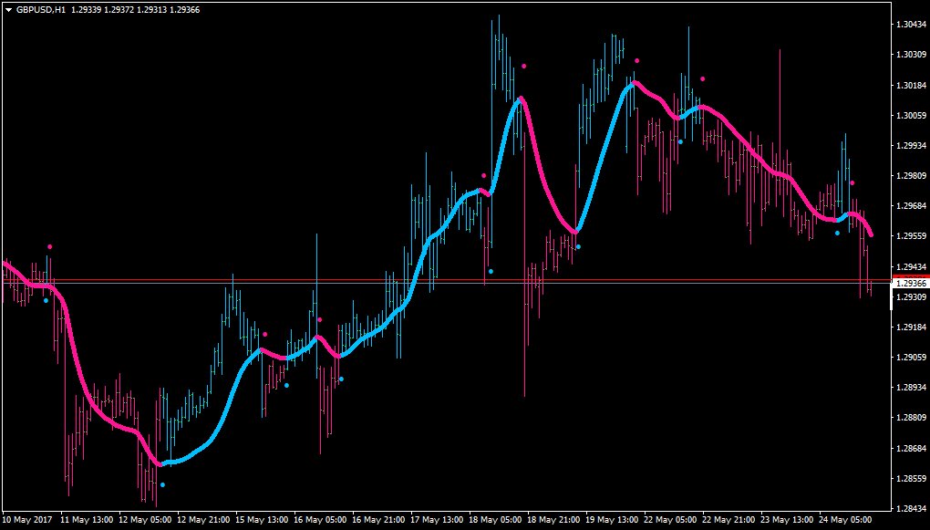 365Here is an enhanced version of mladen's two color LSMA (Least Squares MA also known as linear regression MA).