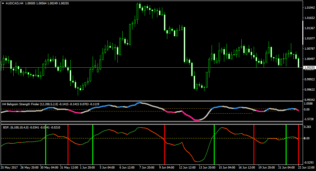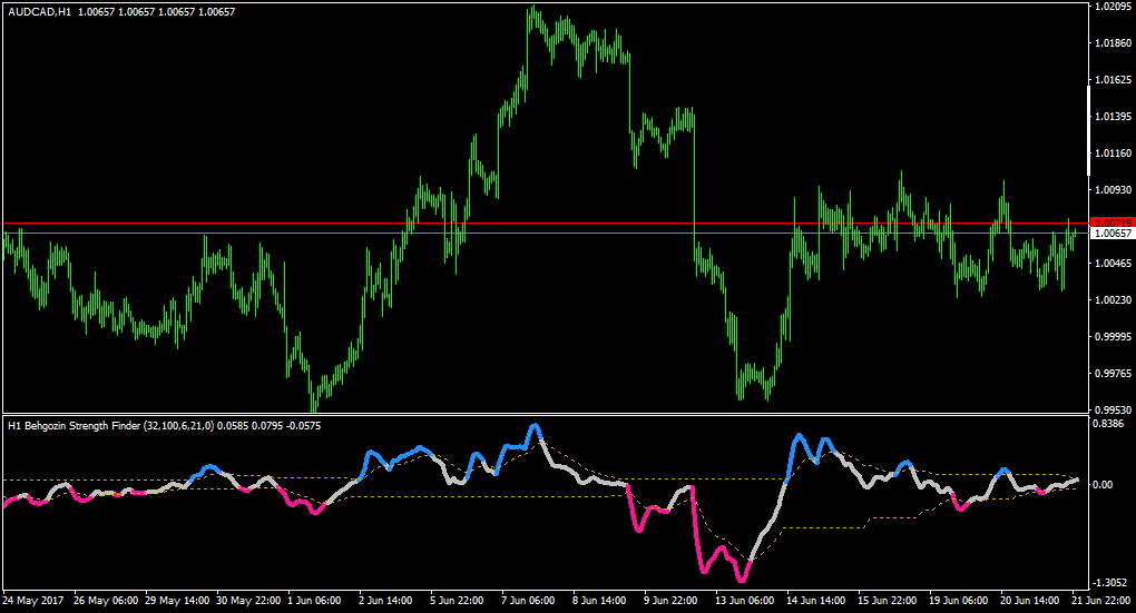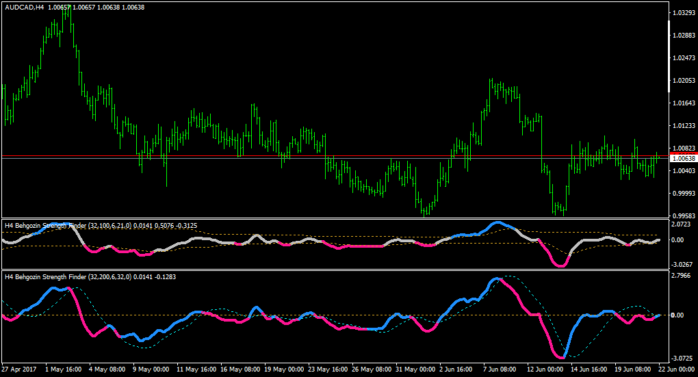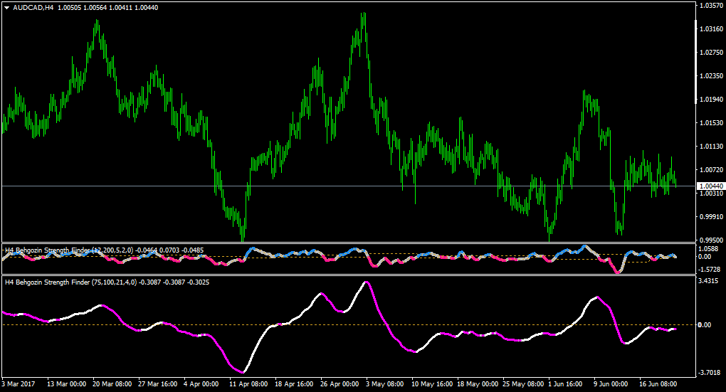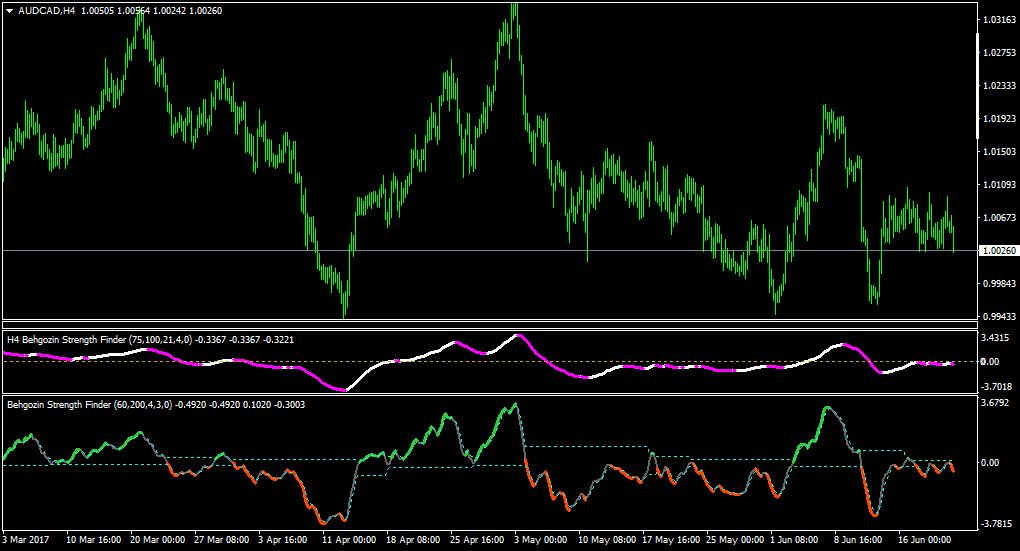 MLADEN : Round up all the versions of Behgozin Strength Finder - here is a multi time frame version , it is a version with colored breakouts , asymmetric levels and alerts - the interesting thing one might find is that all the work - including the alerts , is done by the target time frame,not the current time frame , so all the changes are done in just one part of the code if the indicator has to be altered