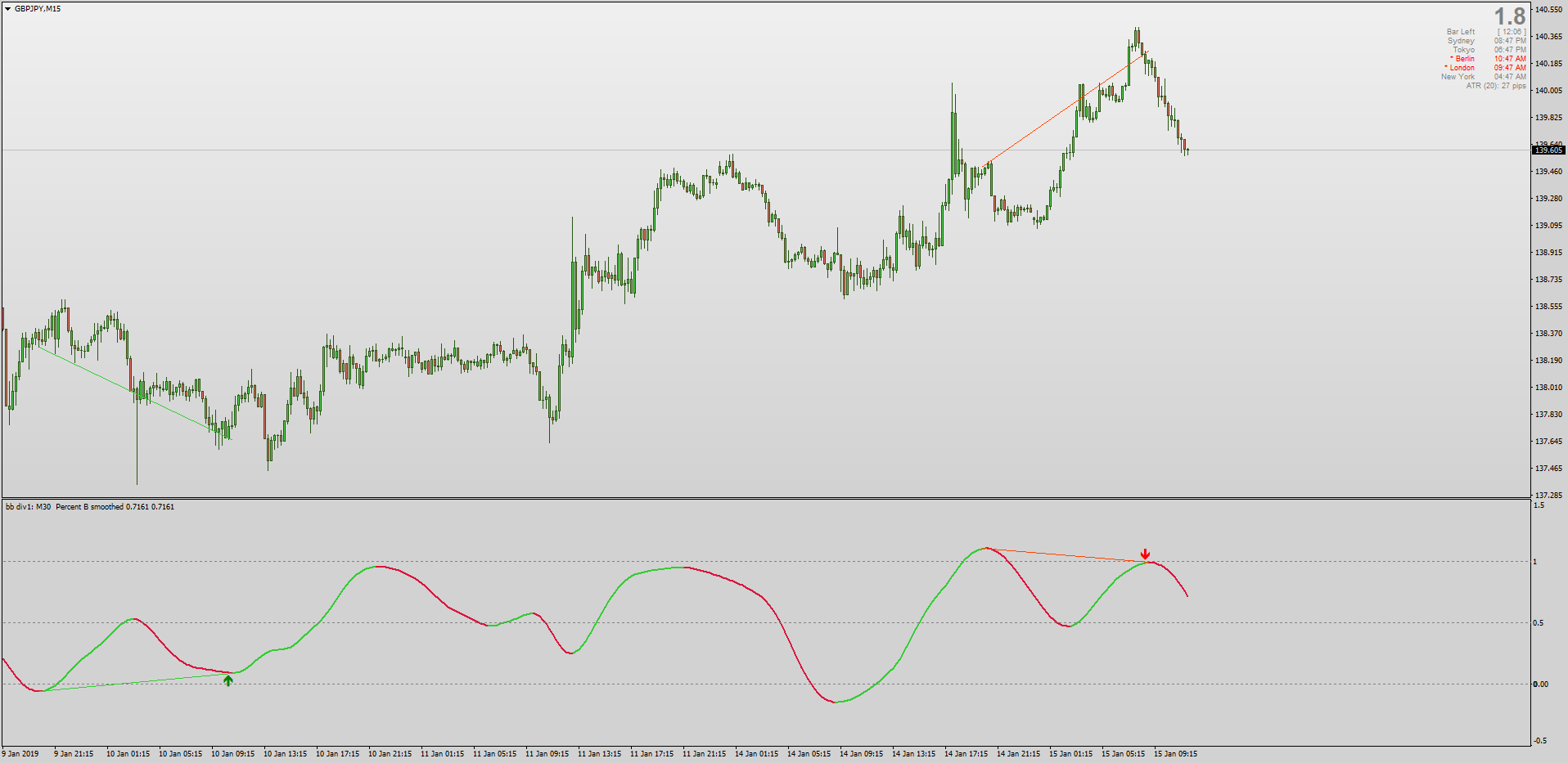The Smoothed BB% indicator is used to measure the price relative to the upper and lower Bollinger Bands & this non-repainting version (recently repaired by Mrtools) features Hidden + Classic divergences + T3 Smoothing to eliminate noise + Alerts & more: viewtopic.php?p=1295384592#p1295384592