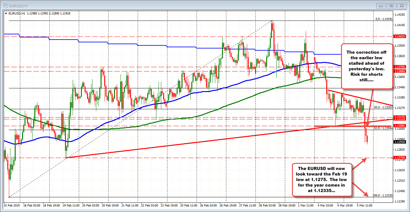 The next target comes in at 1.1275 which is the low from February 19th. The February low - and low for the year - comes in at 1.12335.