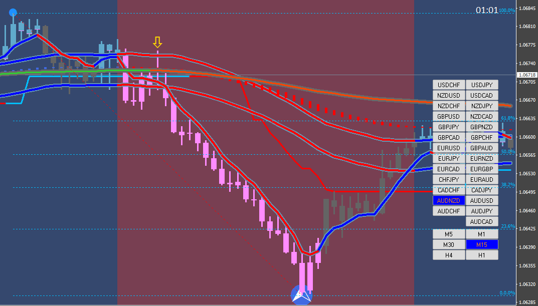 TREND & STOCHASTIC must match before Candle is Blue (Buy) or Pink (Sell).
