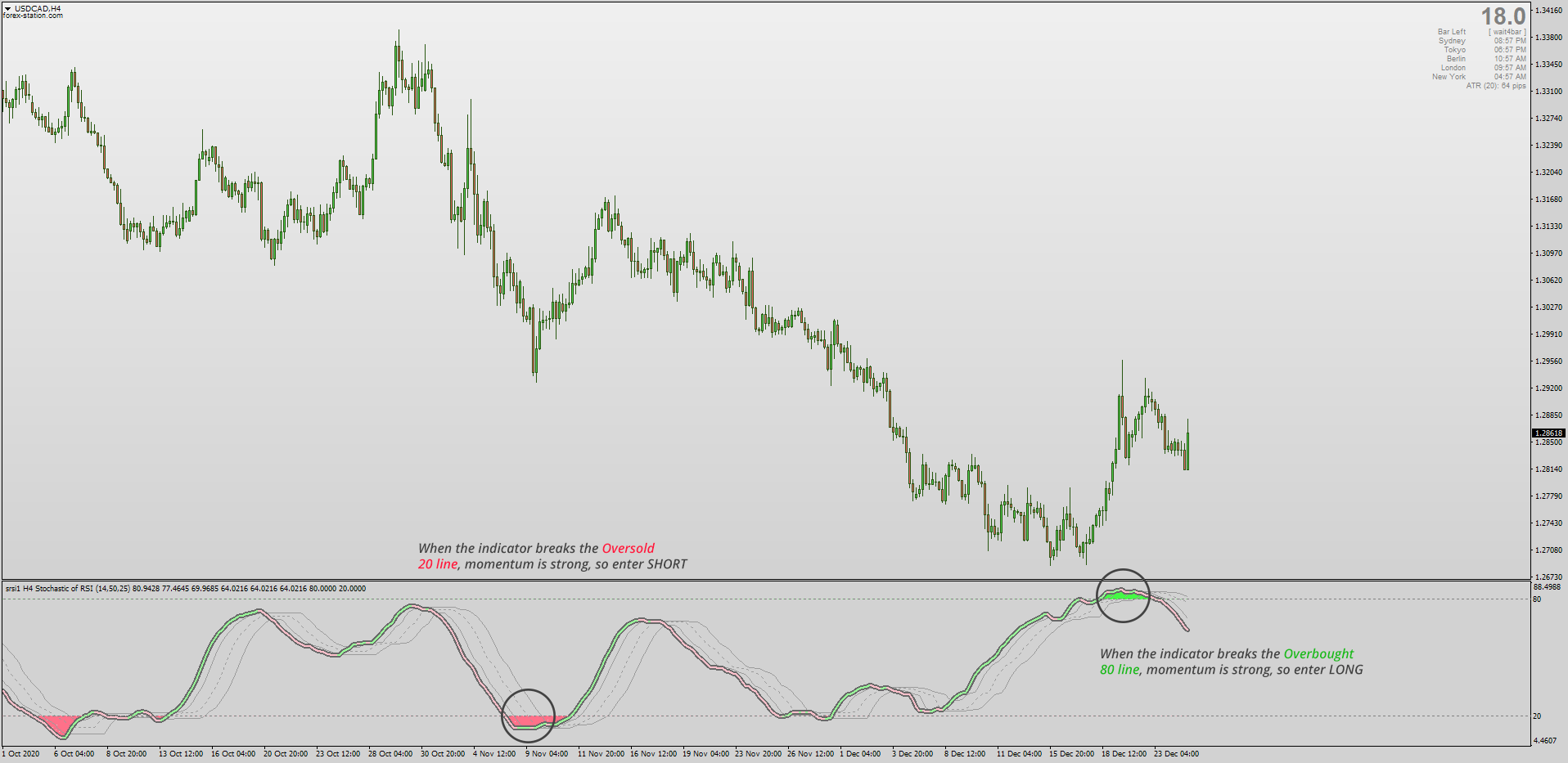 - Going SHORT when the indicator breaks the 20 level