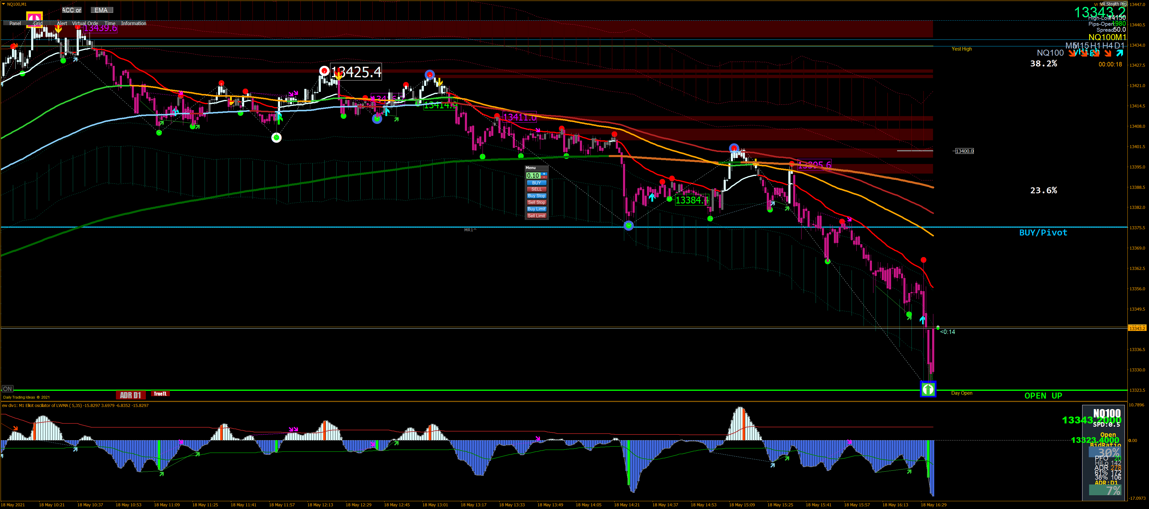 - Yellow histogram bars: Candlestick length in pips