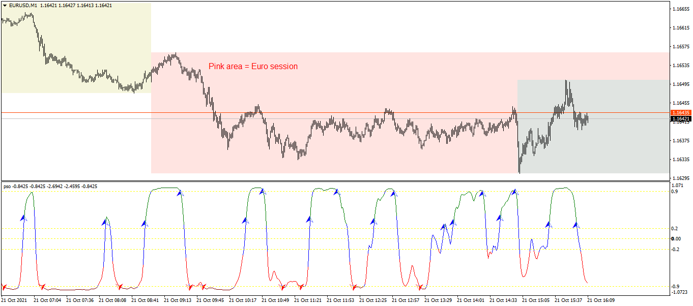 Additionally, the PSO is calculated using a double exponential moving average that creates a smoother and more even response to market changes.