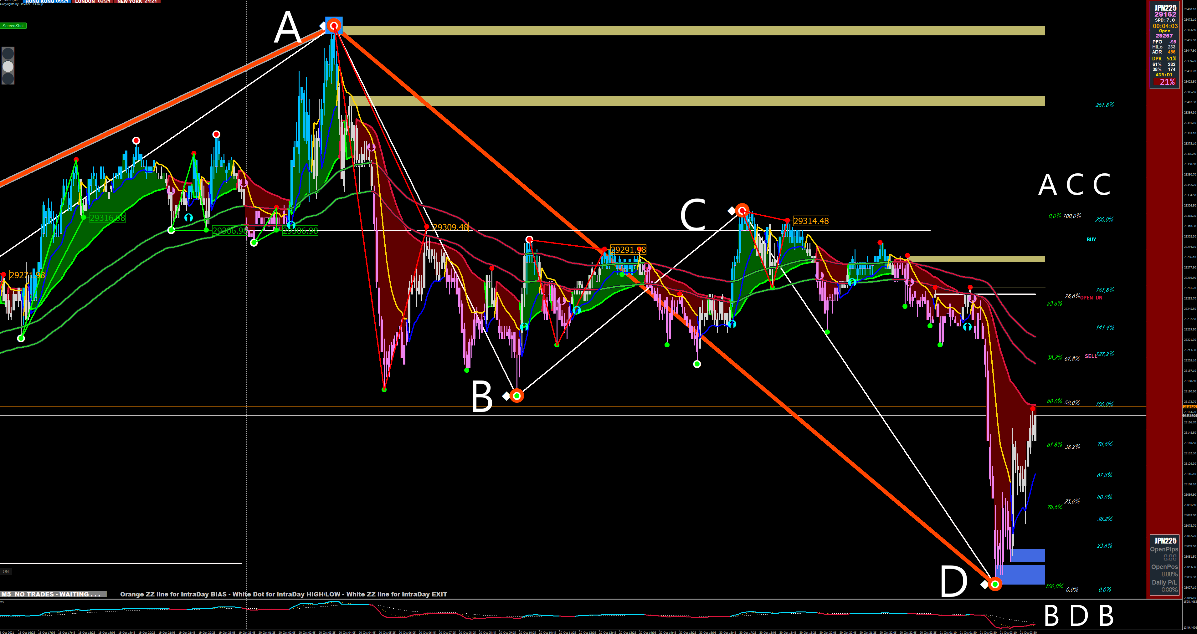 The white percentages D-C is the retracement from D of the last ZZ leg, smaller numbers here indicate the trend is likely to continue in the direction of D.