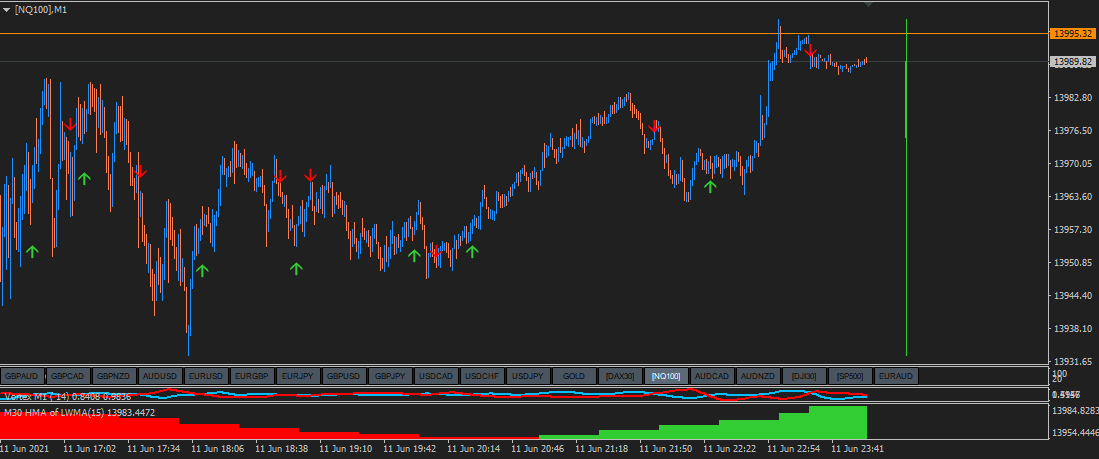 This indicator is only sma medians of 2 put in Settings num, the rest are the timeframes, the yellow line is a median of 1 in the lower timeframe, buy or sell when yellow is above or below of all the rest lines, MOST ACCURATE SIGNALS, if you want trade intraday use only green, aqua and yellow lines