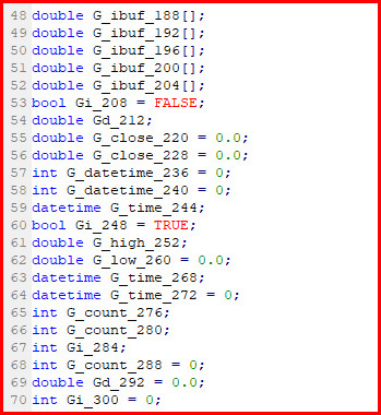 1348Ooopss..my bad..i should have check the code before posting it outBeatlemaniaSA wrote: Sun Dec 12, 2021 4:37 pm It's decompiled code. The master coders won't touch it. See Rules viewtopic.php?p=1295368880#p1295368880 and What is a decompiled MT4 MQL4 file? viewtopic.php?p=1295393945#p1295393945