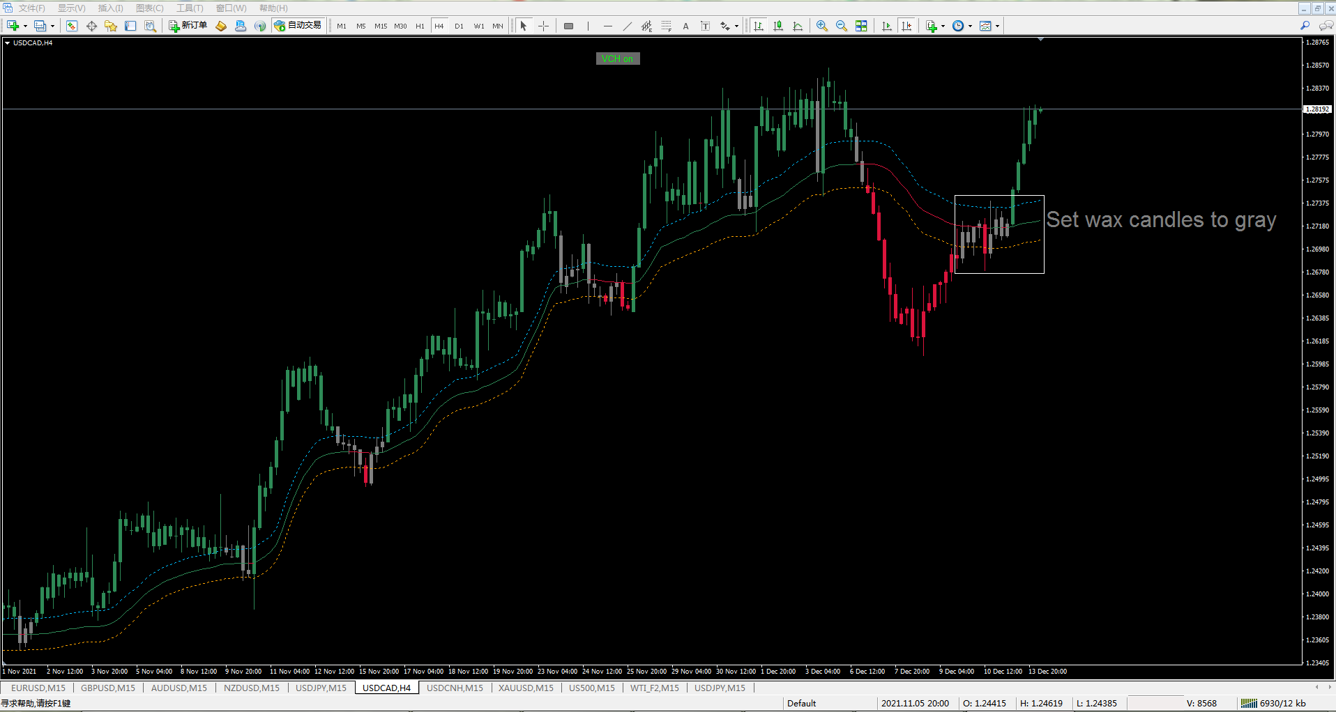 Other situations: the wax candle crosses the 3 line (upper channel dashed line + lower channel dashed line + middle channel solid line), or the wax candle crosses any two lines or any one of the 3 lines, all are set to gray.
