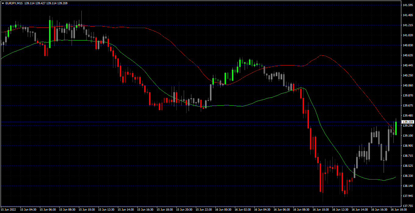 You can turn the Moving Average on or off. The middle line is the Moving Average.