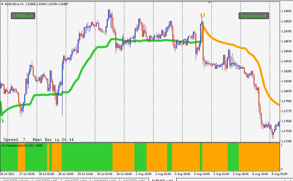 This hist version does not give same results as the the one you recently published "! step nema (mtf + alerts + arrows + bands + btn).exe", I tried to adjust the setting as possible as I can, but I got the shown results. I hope I did not make any mistake