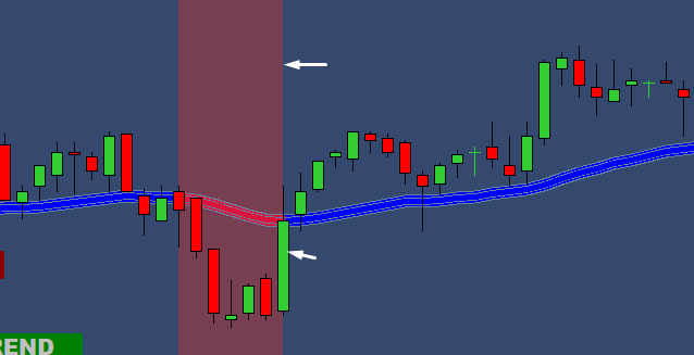 Has anyone seen a simple 'zone indicator' based on moving averages - the colour of the chart background changes when, for example, the sma 36 is crossed by the price.