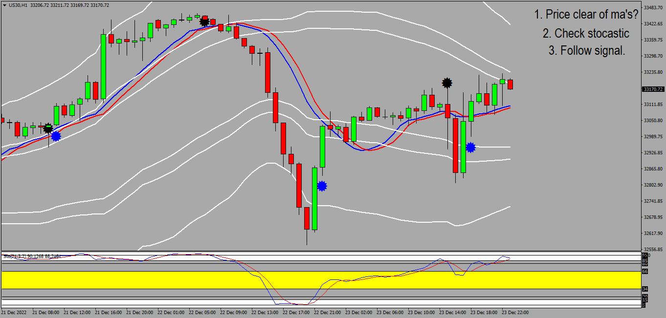 MA for bias (sell cross down; buy cross up)