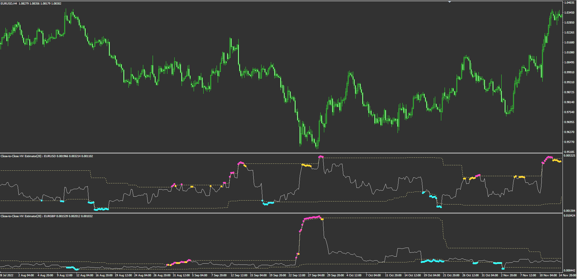 All 8 indicators are included. ( 9 type of Historical Volatility Estimators )