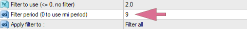 The filter size can be fractional. Some experimenting with the period and filter size is advised prior to using the indicator for trading decisions.