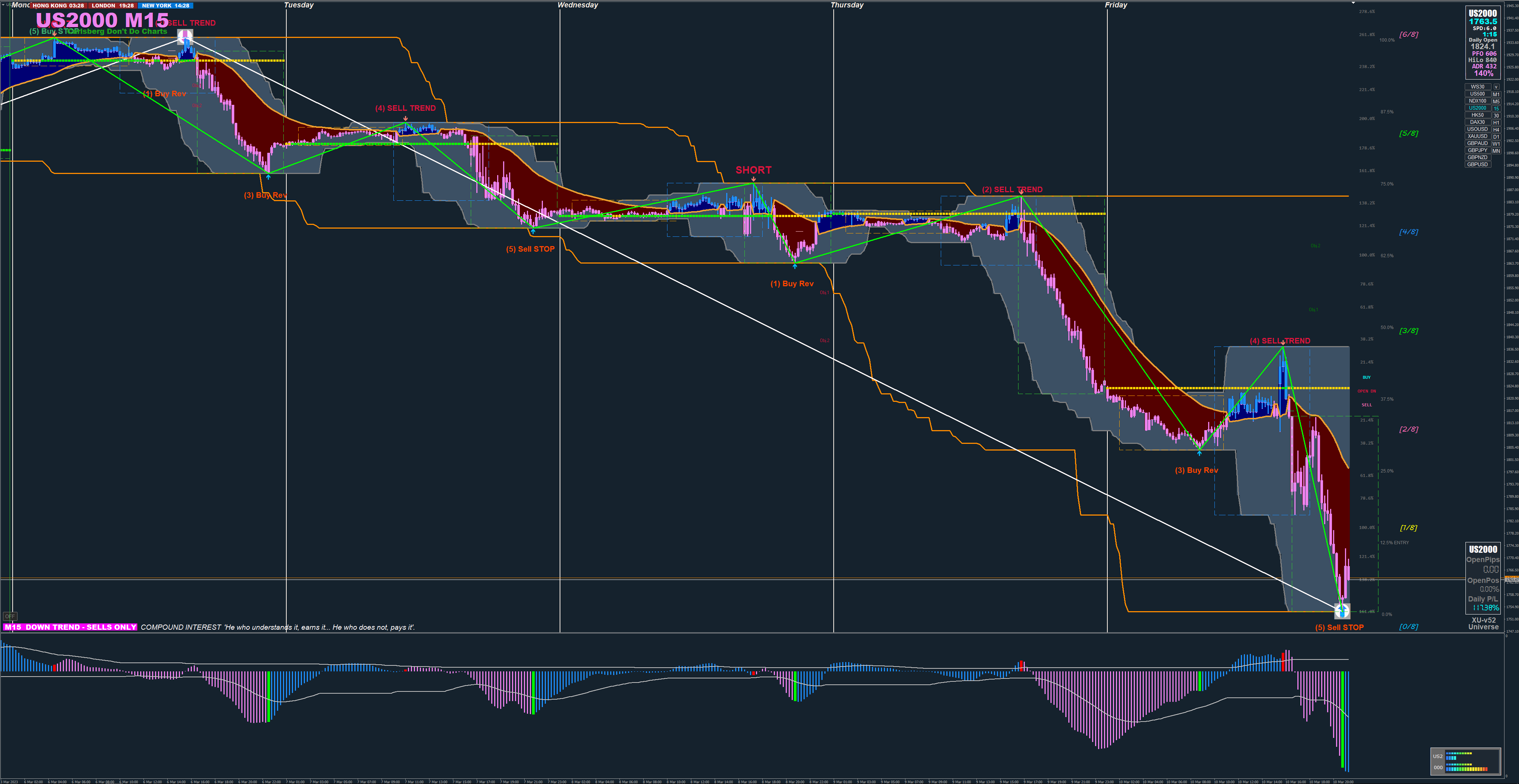 I haven’t released v52 yet because I’ve been testing all time frames from 1 minute to 1 hour. I found that the 15-minute time frame is the most optimal, using 36, 144, and 576 results in a stable roadmap. I’ve simplified the system, reduced setup complexity, and increased the sustainable daily target. Traders managing 5-10% should be able to get 15-20%, others greater than 35% from trading one or two pairs on the 15min TF. The Higher cycles (576 & 144) are used as BIAS and traded off using the lower 36 cycles, all from the 15min TF. The 144 may be a 9 and the 576 a 36 on a higher TF, but it still shows up on the 15min TF and we can trade off our cycle BIAS. As a fractal, it is self-similar and self-correcting when the market goes haywire and out of sync. No more chaos, just order in a drop down system fashion from higher TF to lower TF and displayed on one 15min workspace in a Simple Trend following Trading System. Because I use 36 & when multiplied by 4 = 144 & you multiply that by 4 to give you 576, and 15mins multiply by 4 = 1hr & 1hr multiply by 4 = 4hr, it allows for synchronicity throughout the TFs to show areas of important support/resistance and the 15min TF is a great base to work from (also, with the 15min TF you can start to pick off the Highs and the Lows within the intraday) plus the fact that we are trading intraday, i.e. no carry trades, we get in and out in the same day usually during the London/US sessions when our markets (US2000 & Gold) are moving the most. This also allows for the compounding of daily profits from previous days trading which gives us our exponential growth every trading month. Now we trade the busy months of the year, Feb, Mar, Apr, Sep, Oct, & Nov. That's six months at exponential growth doing the same thing day in day out using nothing but muscle memory on the same Chart on the same TF. A bit boring after a while but the money is good as you can go do other things in the quiet months when you are not trading. Anyway, I will post v52 in full on Easter.