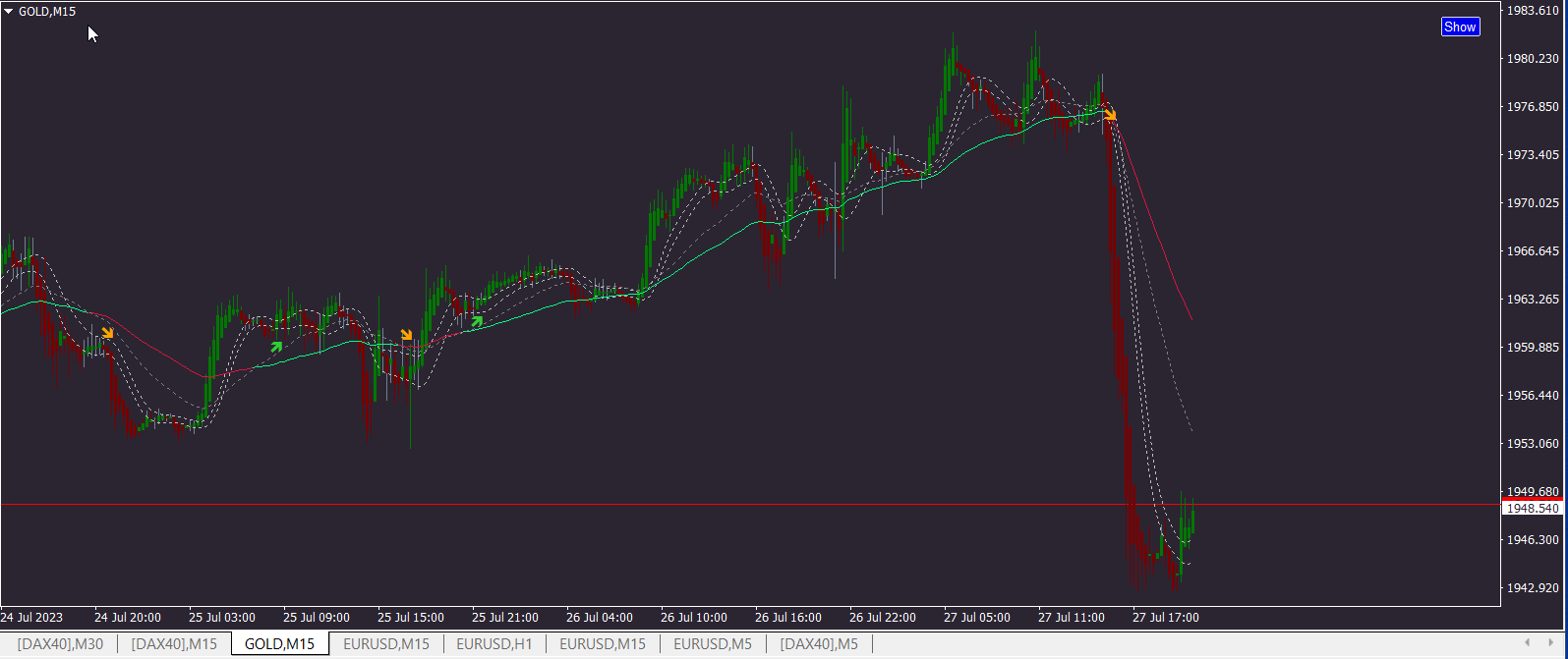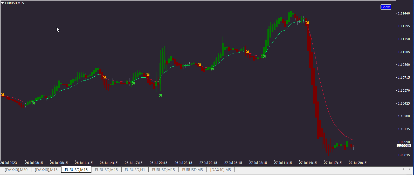 Finally, the script plots the Heikin Ashi candlestick chart and draws midline, upper horizontal line, lower horizontal line, lower limit line, and upper limit line on the chart.