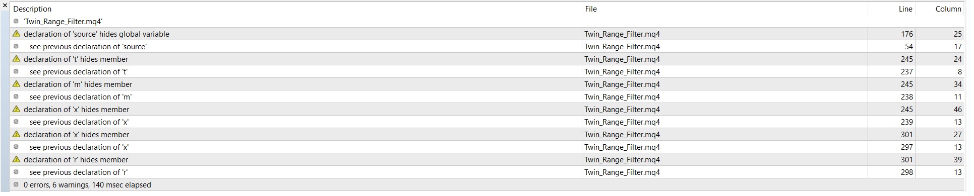 This gives various warnings in : metaeditor : on compiling.