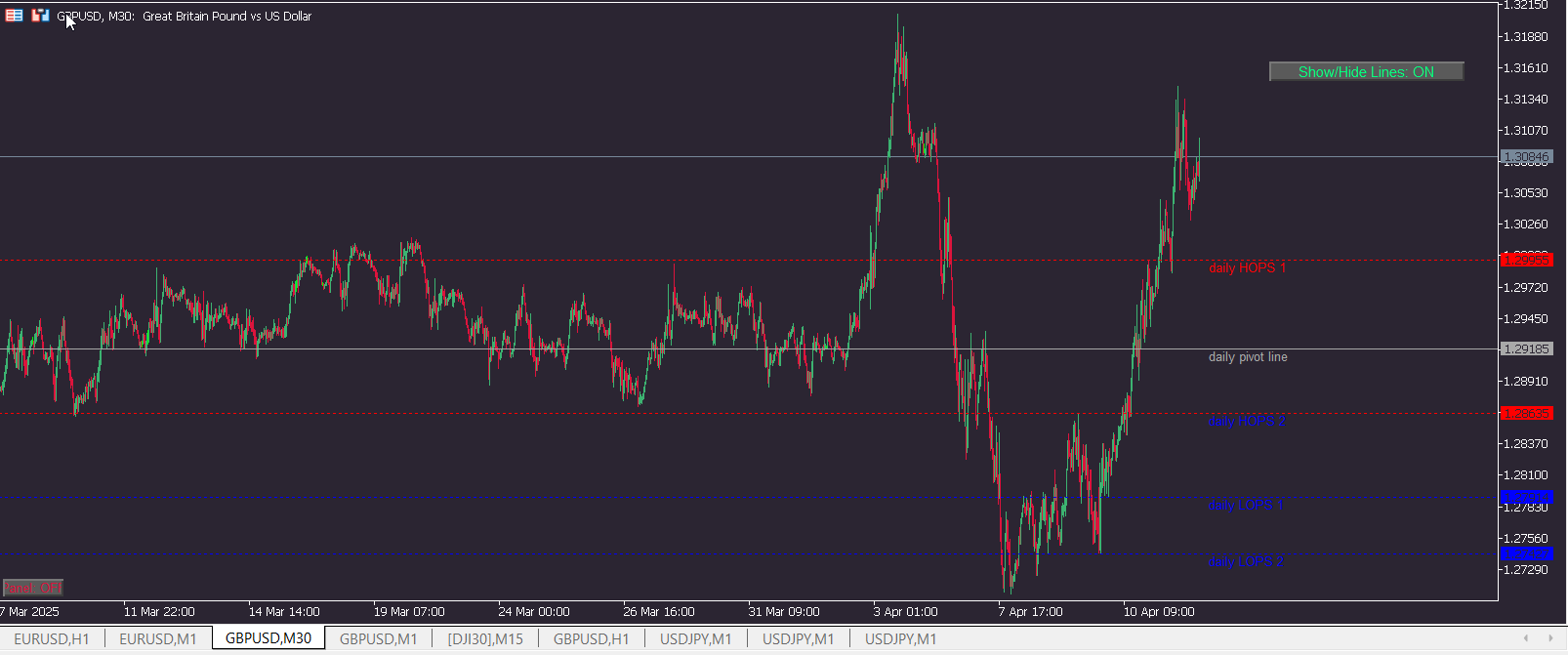 The "HOPS" and "LOPS" stand for High Of the Previous Session and Low Of the Previous Sessions. That makes it a sort of support/resistance or a pivot type of indicator. This version supports any of the time frames that are supported by MetaTrader 5 (even displaying lower time frame session pivots, lows and highs).