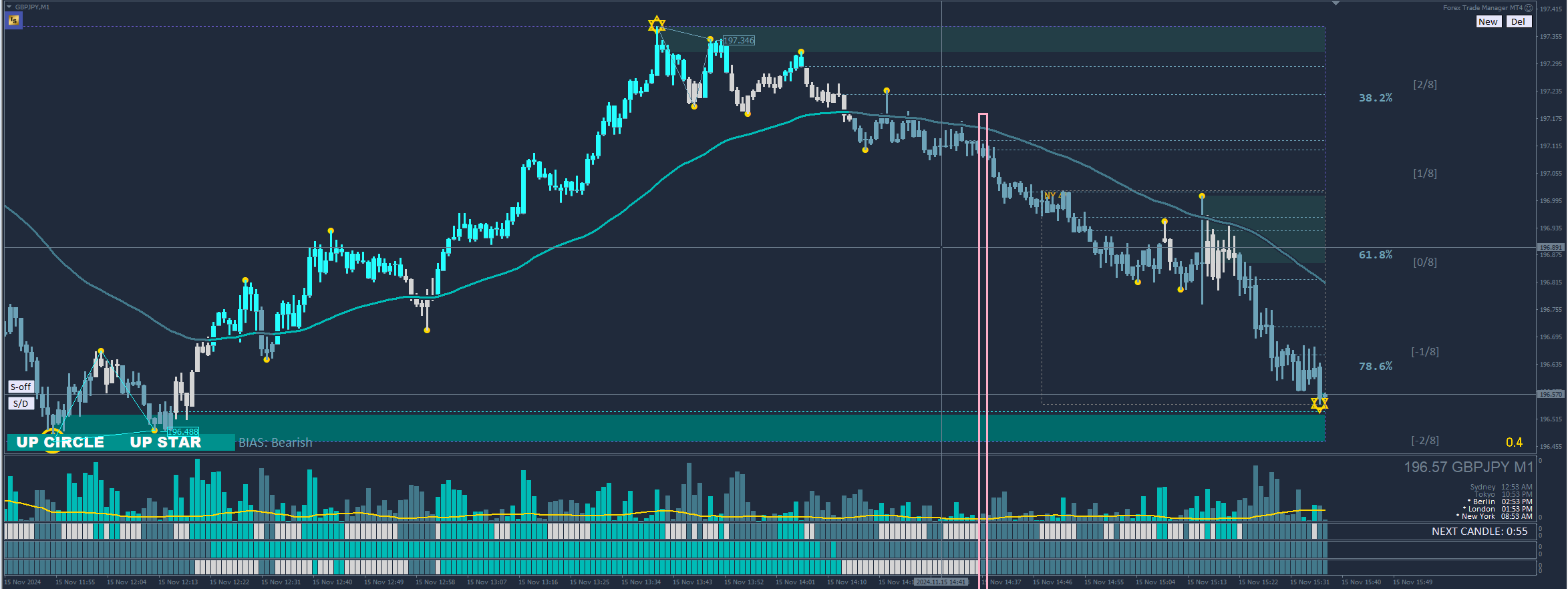 Closed GJ short now at resistance (bullish level), but if you have patience it will likely go down a little bit more before reversing (around 196.300/200)