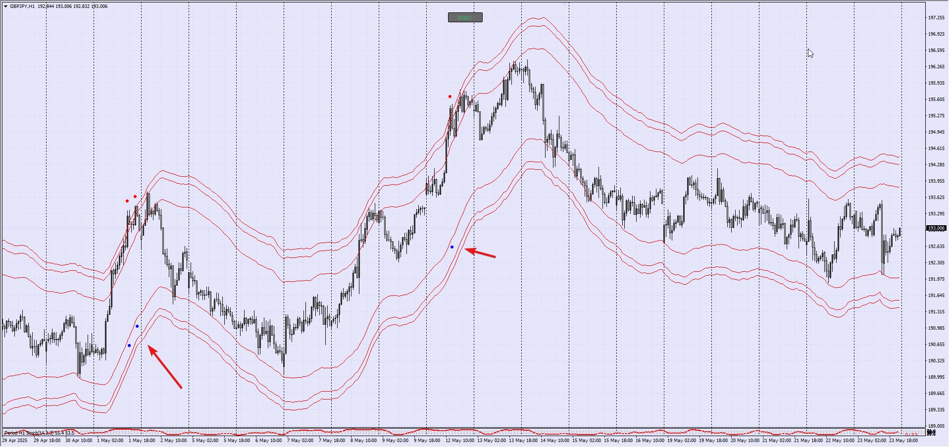 2) It seems it is unable to draw lower channel breaks dots.