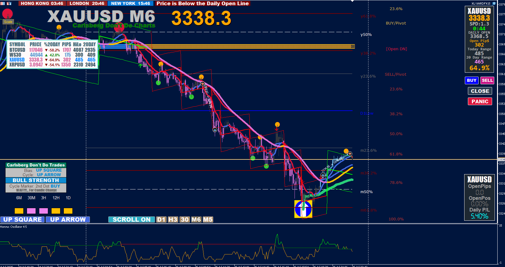 Price is ABOVE the Daily Open Line and is perfect UP move towards next DN ARROW/VWAP3 DN.