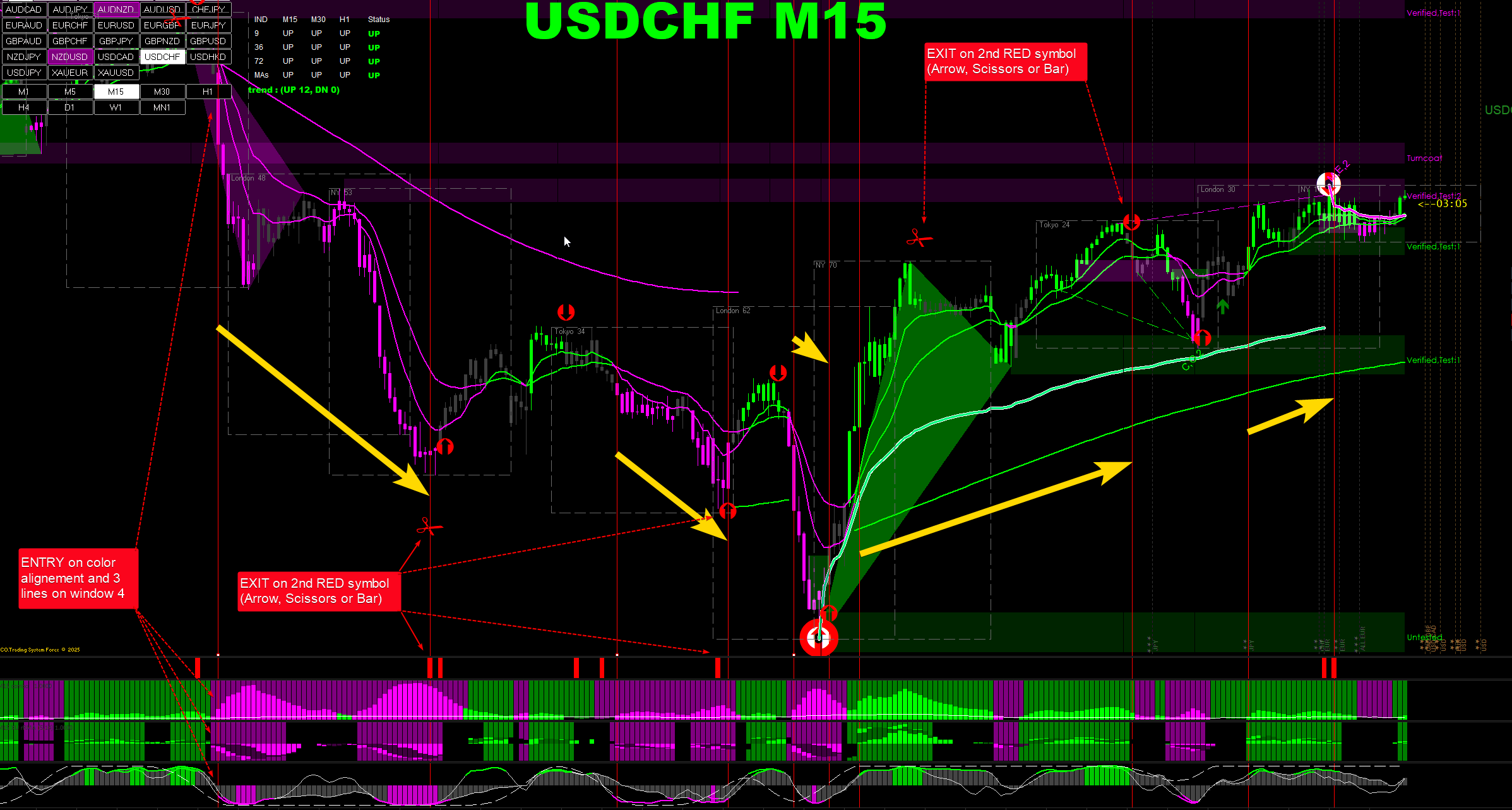 - The charts, with some comments, of a few pairs, on mainly 15m charts. Add also 1H charts, because it seems to work on various time frames.