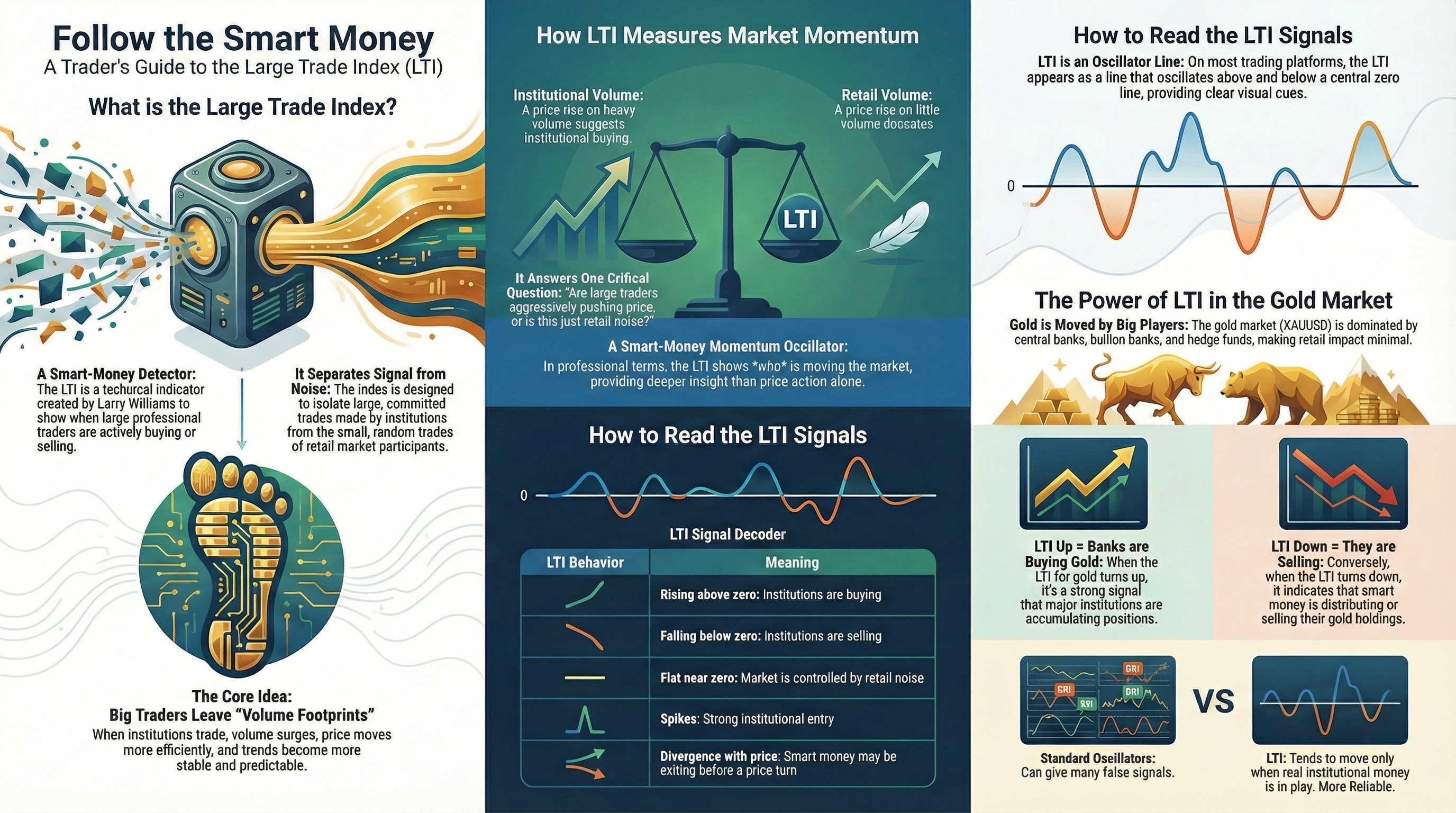 Larry Williams’ Large Trade Index (LWTI) is a smart-money detector.