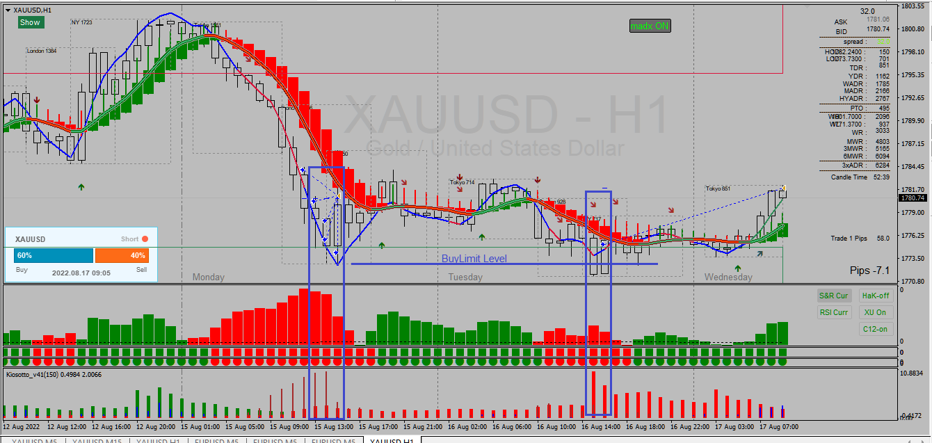 2. Next to the levels 562, 662, 762 I placed limit orders in buy and added one market hands.