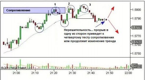 resistance). As a result, the price breaks the local minimum between 2 and 3 attempts to break through the resistance.
