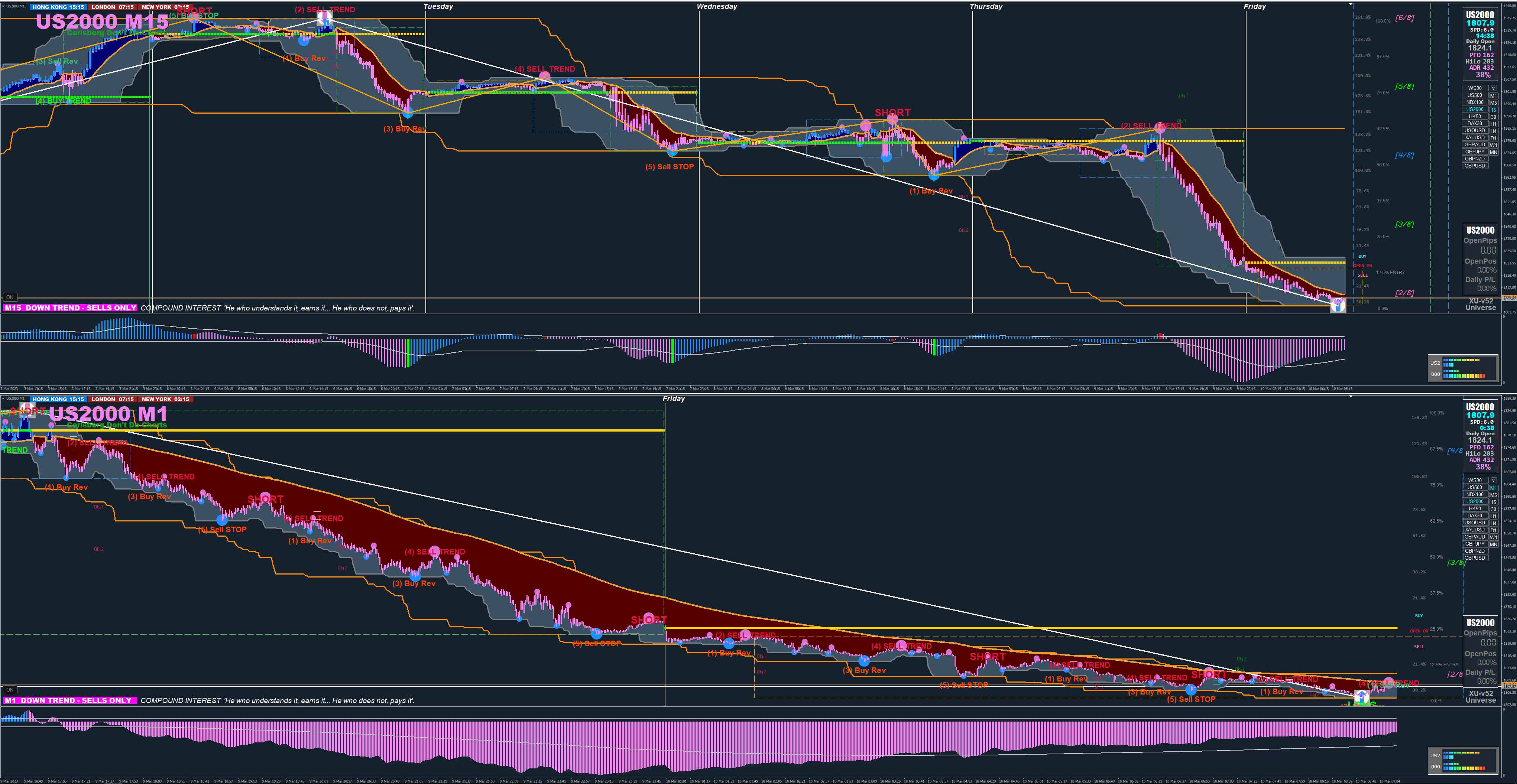 I'm not sure you're looking at these charts correctly. That buy signal on the 1m chart corresponds with the blue dot on the 1h chart that is all the way towards the end of the chart. Zoom in and look at the time/date on the bottom of the charts, that 1m buy is signaling a pullbacksgarr wrote: Thu Mar 09, 2023 3:55 am I understood the current sell trend, but the buy trend marked on one minute on the graph in the figure I don't understand it, considering the hourly graph