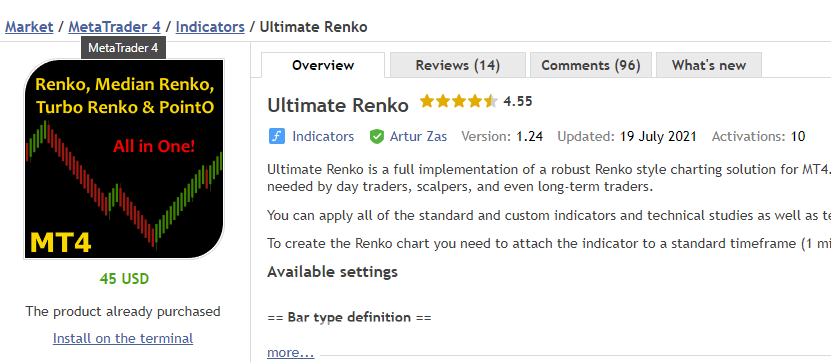 1405Thanks will take a look.FXSurf wrote: Mon Nov 07, 2022 2:15 am Yes there is a big difference then regular renko bars. You can find it in the marketplace.