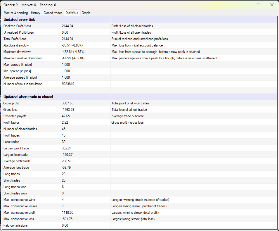 On all zip file you will find 2 folders with buy and sell entries screenshots, a resume of month results and 2 simulation saved files, when month start and after finish with all entries and results.